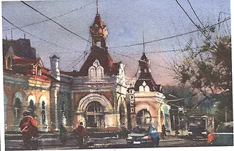 Вашему вниманию предлагается Открытка Пермь акварель "Вокзал "Пермь-I"