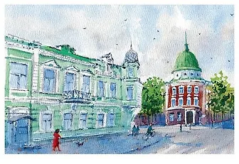 Открытка «Пермь. Гуманитарно-педагогический университет», акварель, автор В. Метелица.