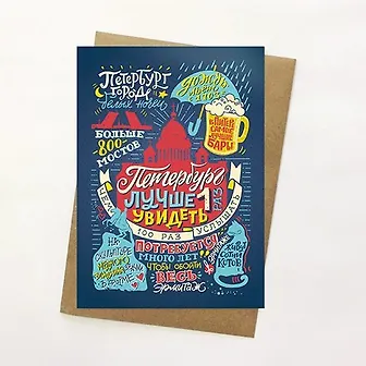 Открытка с яркой высококачественнной печатью. Каждая открытка с конвертом из крафт-бумаги упакована в прозрачный пакет.