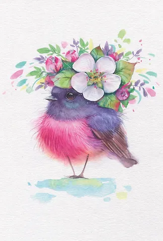 Открытка одинарная 10*15см "Петроика с цветком"