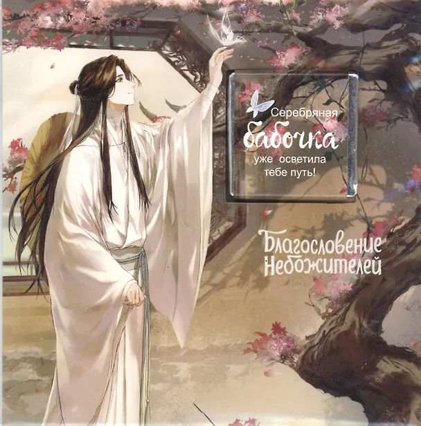 Открытка по мотивам новеллы "Благословение небожителей" с маленькой шоколадкой будет приятным дополнением к подарку для фаната. Изображен Се Лянь с бабочкой.