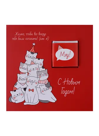 Очень милая и вкусная открытка! Елка из котиков создают прекрасное новогоднее настроение. Шоколадка это приятный бонус, который можно съесть, а сама открытка останется на память. Отличный небольшой подарок-комплимент. Плотный картон, яркая и детализированная печать. Котики, украшающие ёлку, просто очаровательны! Идеальный недорогой знак внимания для друзей и коллег. Понравилось!