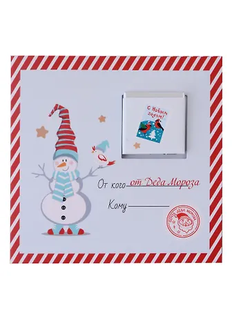 Милашная открытка и вкусная шоколадка, заряжающая новогодним настроением! Очень понравился дизайн, открытка выглядит как не слишком вычурное, но очаровательное волшебное послание на снежно-белом конверте с забавными марками. Снаружи подписана аж самим Дедом Морозом, а внутри можно подписаться как за него, так и за себя :) Милая деталь, шикарная идея сама по себе. Недорогой и симпатичный презент, который захочется оставить на память.