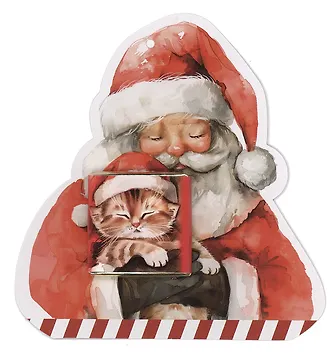 Потрясающее поздравление к новому году в виде открытки с дедом морозом с котиком и с маленькой вкусной шоколадочкой из молочного шоколада внутри!!! Как только увидела в магазине, сразу же купила, не раздумывая, так приятно стало на душе! Рекомендую всем приобрести такой подарочек для своих родных, любимых и друзей!!!
