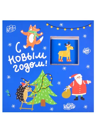 Открытка с шоколадом С Новым Годом! (Дед Мороз, лис, елка и еж) (синий), 5г