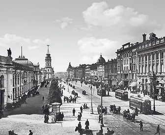 Открытка с видами (СПб) ч/б Перспектива Невского проспекта