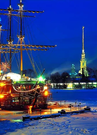 Открытка с видами (СПб) Зима.Парусник.Петропавловская крепость [SPB-045]