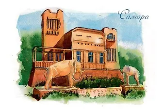 Открытка Самара акварель Дом со слонами Дача К. Головкина