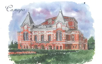 Открытка Самара акварель "Самарский академический театр драмы"