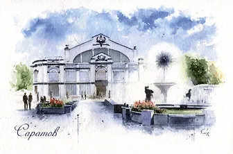 Вашему вниманию предлагается открытка "Саратов. Рыночная площадь", художник Воля А.