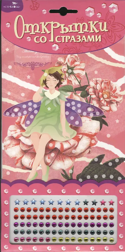 Открытка со стразами "Фея в зеленом Thank you". .Мелкие детали. Не давать детям до 3 лет.