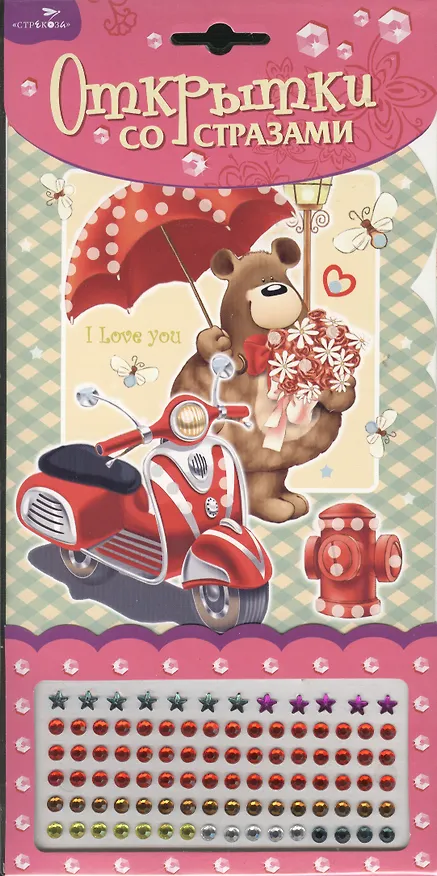 Открытка со стразами Медведь с букетом I Love you (DC-1004B) (упаковка)