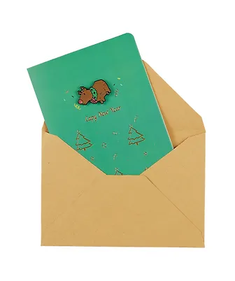 Открытка со значком Капибара Capy New Year (15х11) (конверт) (картон, металл)