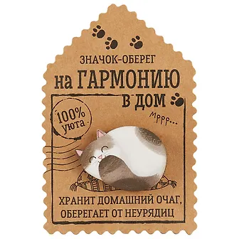 Значок-оберег, который принесёт в дом гармонию. Идеально подойдёт в качестве подарка хозяевам дома, если вы собираетесь в гости. Прелестный котик не оставит никого равнодушным. Оберег практически невесомый, сделан на совесть, а стоит он совсем недорого. Крепление значка надёжное. Подарите своим друзьям или близким людям кусочек счастья - уверена, они это оценят!