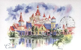 Открытка. Сочи акварель. "Парк аттракционов"