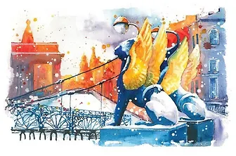 Одна из самых красивых открыток в серии на акварельной бумаге. Мне нравится текстура поверхности открытки, нравится стиль рисунков и то, что изображены знакомые и узнаваемые места в Санкт-Петербурге. Для себя я собрала всю серию открыток с рисунками этого города, а теперь иногда покупаю открытки на подарок родственникам и друзьям, выбирая ту открытку, на которой изображено значимое место именно для этого человека.