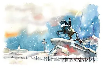 Открытка Медный всадник (зима) (акварель) (10х14) (О/001/017)