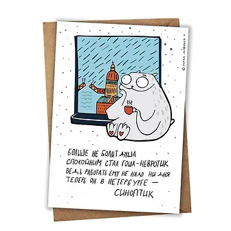 Сувенирная почтовая открытка про Санкт-Петербург от бренда «Морда Довольна»