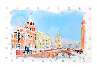 Открытка «С новым годом Воронеж» от бренда Орех Сувениры поможет передать тёплые праздничные пожелания тем, кто любит этот город или скучает по нему. Акварельная иллюстрация Шарбонно создаёт мягкое зимнее настроение и делает открытку приятным дополнением к подарку или маленьким сувениром из Воронежа. Подойдёт для новогодней почты друзьям, коллегам и близким — останется на память и украсит полку или рабочий стол.