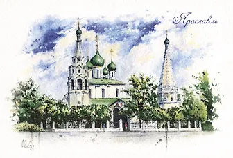Вашему вниманию предлагается открытка "Ярославль. Церковь Ильи Пророка", художник Воля А.