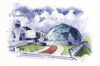 Вашему вниманию предлагается открытка "Ярославль. Ярославский планетарий им. В. Терешковой", художник Воля А.