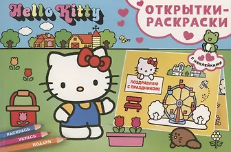 Открытки-раскраски с наклейками. Hello Kitty. Скоро праздник