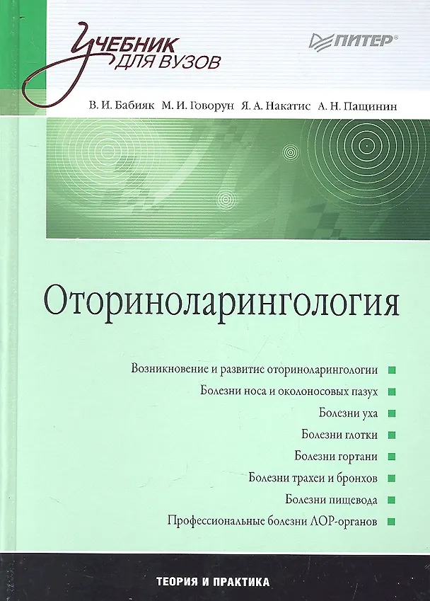 Учебник содержит подробные сведения об основных периодах развития отечественной и мировой оториноларингологии, клинической анатомии и физиологии, методах исследования, симптомах, клиническом течении, лечении и профилактике рутинных, травматических и профессиональных заболеваниях ЛОР-органов.