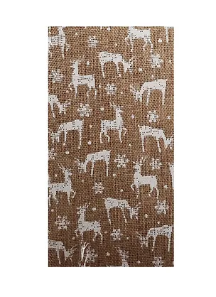 Отрез льна 48*48см, натуральный с белыми оленями (пакет) (11-00839-8)