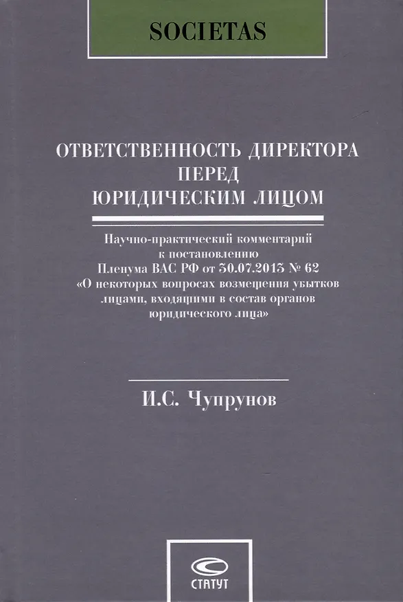 Ответственность директора перед юридическим лицом. Научно-практический комментарий к постановлению Пленума ВАС РФ от 30.07.2013 № 62 «О некоторых вопросах возмещения убытков лицами, входящими в состав органов юридического лица»