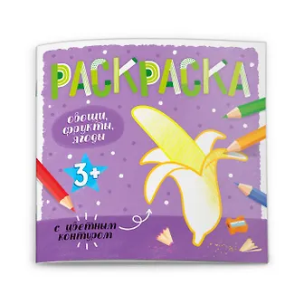 Овощи, фрукты, ягоды. Раскраска с цветным контуром