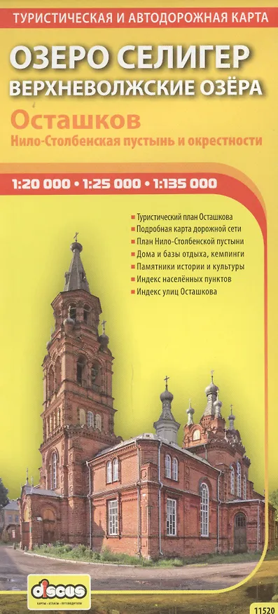 Туристическая и автодорожная карта "Озеро Селигер. Верхневолжские озера. Осташков. Нило-Столбенская пустынь".