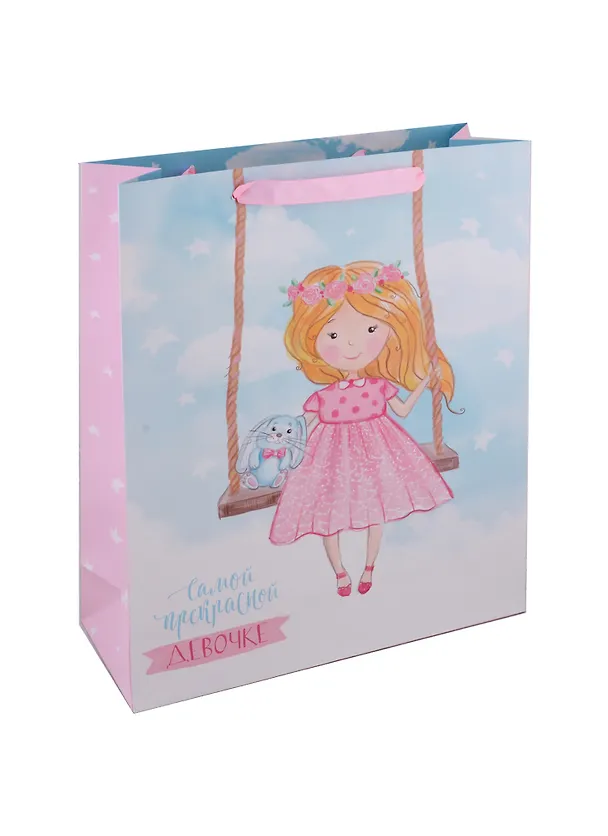 Очень красивый, миниатюрный мне понравился. Очень хороший пакетик, дизайн, очень красивый и маленькая девочка, которая сидит на качельках, и мне понравилось. Купила чтобы поместить туда подарок думала что не вместится но оказывается все наоборот все вместилось мне понравилась эта упаковка красивый дизайн лямки достаточно длинные и мне понравилось Ну. В общем, очень хорошая упаковка.