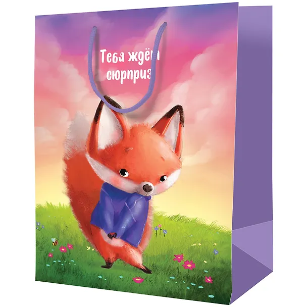Отличный пакет с надписью «Тебя ждёт сюрприз» в приятной цветовой гамме. На пакете изображён милый лисёнок. Пакет хороший по плотности, достаточно вместительный для своего размера. Прекрасное приобретение в любимом магазине Читай-город.