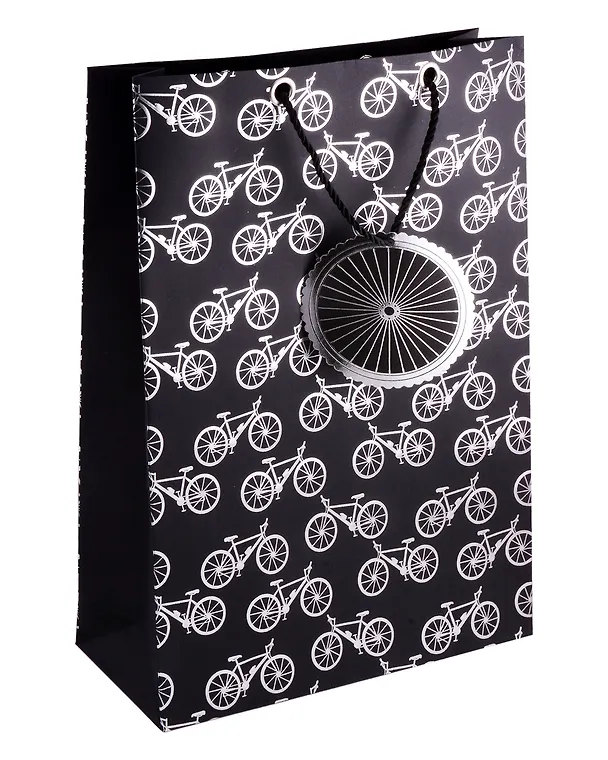 Очень качественный, вместительный пакет с ярким принтом и крученными ручками, так что выдерживает достаточно большой вес подарка. Пакет лучше подойдет для высокого подарка, маленький в нем потеряется. Рекомендую для любителей велосипедов и спорта, цена несколько завышена, но с учетом скидки и бонусов стоил бюджетно.