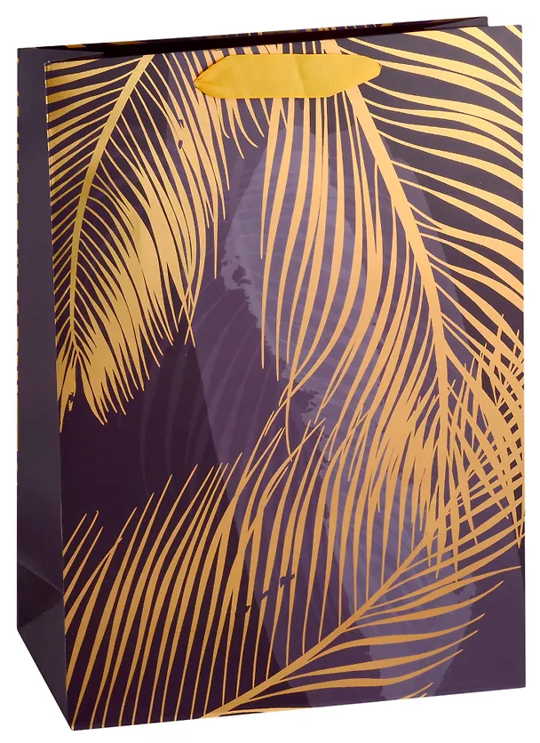 Пакет изготовлен из хорошей, практичной бумаги, она плотная, матовая, не маркая. Совершенно спокойно выдерживает нагрузку под 2 кг, сохраняя приличный внешний вид: у пакета удобные ручки, уплотнённое дно и крепкая, аккуратная склейка. Шла по улице, ехала в общественном транспорте, никаких проблем не возникло. И смотрится пакет весьма эффектно. Красивый базовый цвет, элегантный рисунок из листьев, и сами листья красиво блестят на свету (правда, почему-то, блестящее покрытие только с лицевой стороны, которая от себя, когда несёшь).