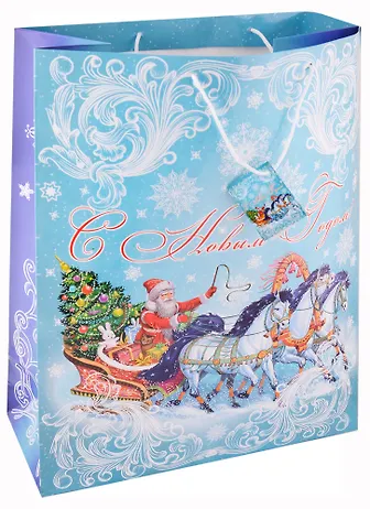 Пакет А3+ 48,9*40,6*19 "Дед Мороз на тройке" Новый год, бум.ламинат