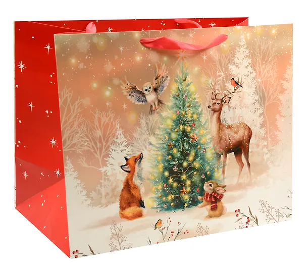 Отличный пакет. Очень большой, плотный, поместится любой подарок. Красиво прорисованы зверята. Без лишнего запаха. Ручки из атласной ленточки, прикреплены хорошо, из пазов не выскакивают. Бумага гладкая, без блеска, приятная на ощупь. Внутри белый, без рисунков, на дне картонная подложка. Хорошо выдержал вес большой подарочной коробки с игрушками.