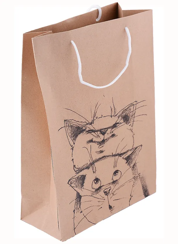 Хороший крафтовый пакет, простой с милыми, забавными Питерскими котиками, от которых глаз не оторвать. Подойдет и в качестве упаковки подарка и просто для повседневного пользования. Ручки прочные, размер средний А4, вес выдерживает большой. В данном пакете ношу с собой контейнеры с едой на работу, всё выдерживает. Цена адекватная, доступная. К покупке рекомендую, буду заказывать ещё.