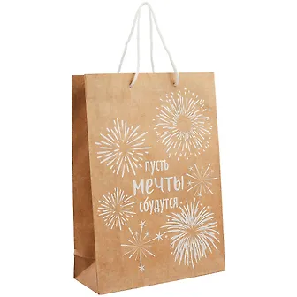 Сомневалась по поводу покупки, так как пакет, на первый взгляд, выглядит простенько и как-то блёкло. Однако, как оказалось по факту, пакет из крвфтовой бумаги – это идеальный вариант для подарка ручной работы. Выглядит стильно и сразу настраивает на нужную волну. Бумага качественная, плотная, хорошо держит форму, не рвётся. Склейка аккуратная и крепкая, дно не провисает. Рисунок пропечатан чётко, смотрится приятно и ненавязчиво, не отвлекает на себя внимание. Хорошие, удобные ручки, верёвки не растягиваются и не выскакивают. Можно смело положить внутрь что-то увесистое, что лично для меня большой плюс.