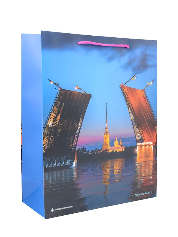 Пакет А4 32*26*10 СПб "Дворцовый мост, Петропавловская крепость" фото Михайлов А. бум.мат.ламинат