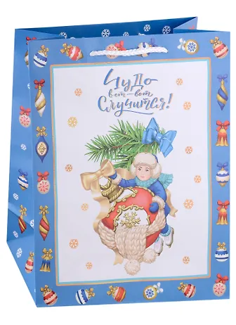 Миленький пакетик, в котором можно подарить что-то человеку на Новый год. Дизайн пакетика мне очень понравился! Прелестная девочка изображена на нем. Навевает новогоднюю атмосферу. Пакетик прочный, в меру вместительный, хорошо проклеен, удобно держать в руке. У меня туда поместилась шоколадка, свеча и открытка. Цена маленькая, так что смело берите, всем рекомендую.