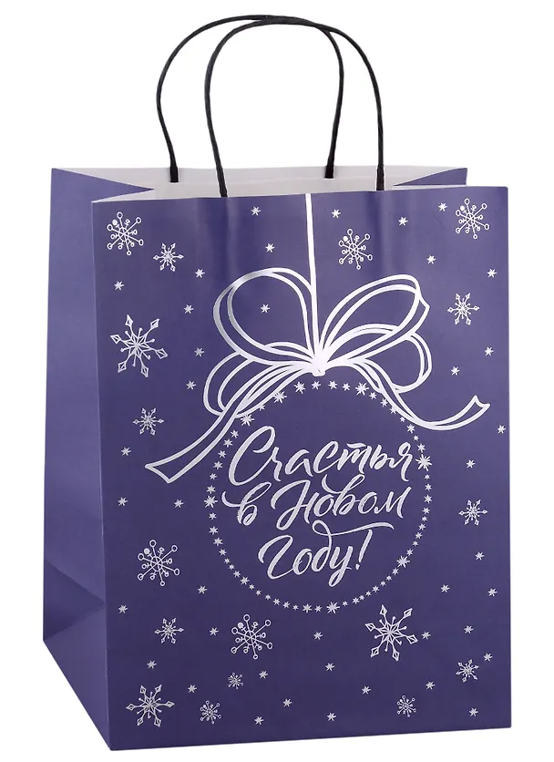 Тематический подарочный пакет на Новый год. Достаточно вместительный, но не очень надежный. Один раз донести подарок хватит.