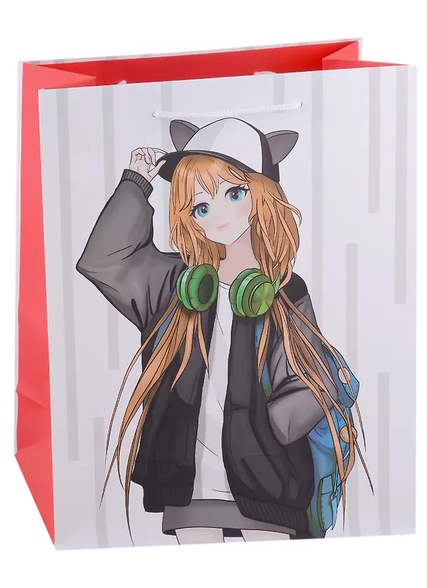 У подруги наступал день рождение и я начала думать как же мне красиво упаковать подарок. Оспорь долго думала и искала варианты упаковки. Но в читай городе мне на глаза попался этот замечательный пакет в стиле аниме. Это девочка в кепке, которая выполнена в стиле кошке. Моя подруга любит эту тему, так что я сразу же решила что куплю этот пакет. И не прогадала пакет очень понравился подруге!!