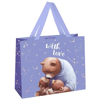 Подарочный пакет MESHU 32*26*12 см − это отличная идея для эффектной упаковки презента. Изготовлен из плотного мелованного картона с матовой ламинацией и отделкой фольгой. Пакет MESHU With love выполнен в милом дизайне.