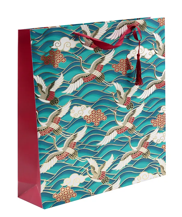 Очень красивый и качественный пакет! Плотная бумага, хорошие красные ручки, красивый рисунок и милая красная кисточка) Покупали для подарка, очень понравилось. От дизайна особенно в восторге! Еще и отлично сочетался с самим подарком. Замечательные журавлики))