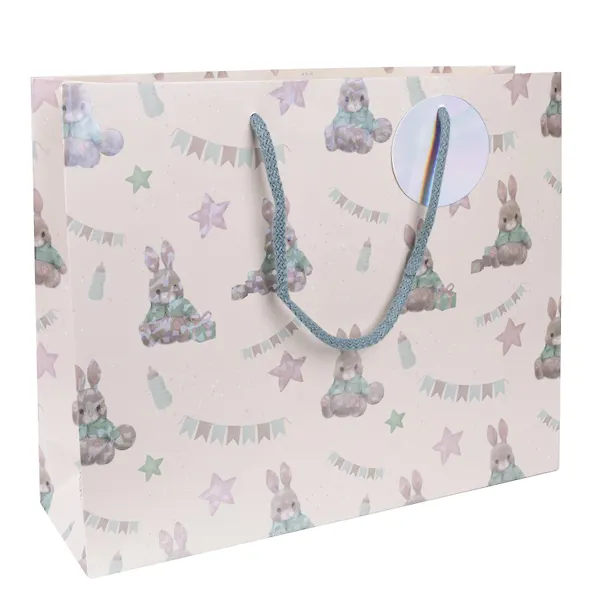Пакет А4 «Милый кролик» (33×26,5×10 см, детский, бумага с матовым ламинатом) — это подарочный пакет с изображением кролика, предназначенный для упаковки средних подарков. Лаконичный дизайн и качественные материалы делают его подходящим для детских праздников, подарков и других случаев.
