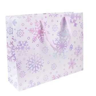 Понравилось то, что есть объем у рисунка на передней части пакета, снежинки слегка переливания, имеют ширшпвую тикстуру похожую на блёстки (и главное материал не остаётся, как часто бывает)- это эфектно смотрится.