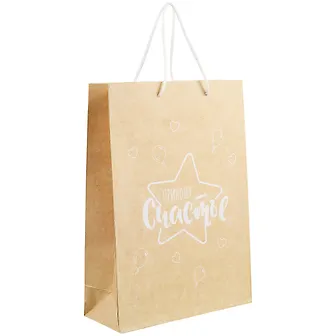 Приятный материал типа "крафт", дополняется ещё и тем, что ручки у этого пакета очень крепкие, и самое главное, что меня поразило и заставило именно его купить для упаковки подарка друзьям : это надпись. Согласитесь, прикольно и приятно получить подарок в пакете, с такой оригинальной надписью, принтом, где не только что-то типа звезд, но еще и отсылка к счастливым эмоциям. На ментальном уровне это влияет на настроение, поэтому я считаю это приобретение удачным, и рекомендую данный товар к покупке. Спасибо сети "Читай-город! за широкий ассортимент товаров этого направления!