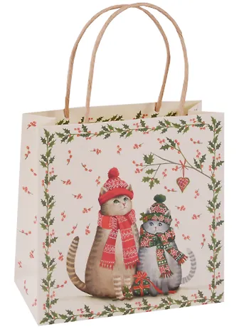 Пакет А5 18*18*6 "Winter cats", Новый год, мат. ламинат, Хансибэг