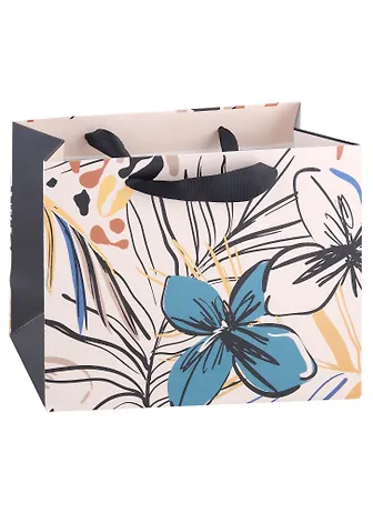 Красивый и стильный подарочный пакет, из плотной ламинированной бумаги, надежные ручки.  Расцветка унисекс, подойдет для подарочка как для девочек, так и для мальчишек. Ручки и бока у этого пакета черного цвета, листья с позолотой.